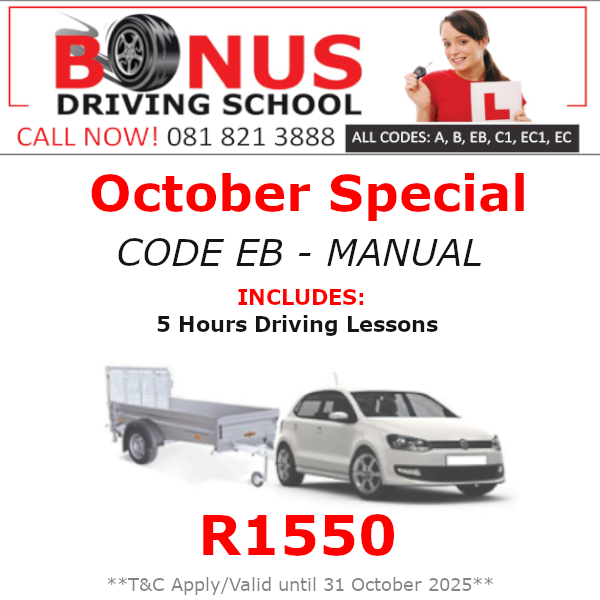 R5900.00 – Code EB (Light Motor vehicle & Trailer)