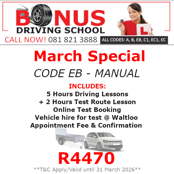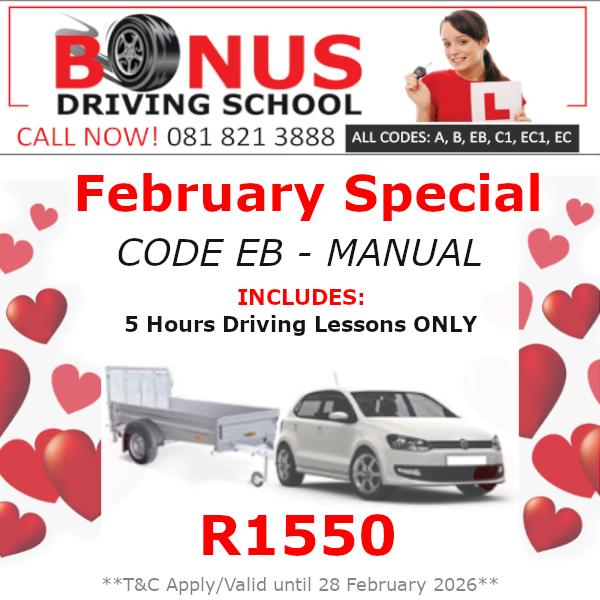 R5900.00 – Code EB (Light Motor vehicle & Trailer)